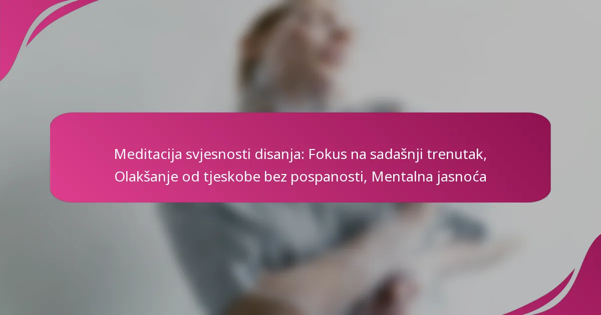 Meditaacija svjesnosti disanja je snažna praksa pažnje koja naglašava promatranje disanja kako bi se poboljšala usredotočenost na sadašnji trenutak i mentalna jasnoća. Ova tehnika učinkovito ublažava ...