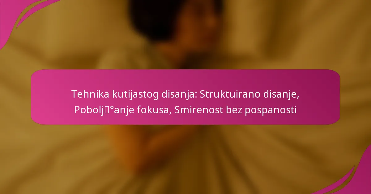 | Kutijasto disanje | Udišite, zadržite, izdahnite, zadržite po 4 sekunde | Fokus, olakšanje stresa, poboljšanje performansi |
