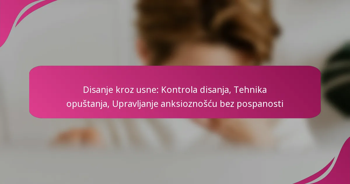 Disanje kroz usne je učinkovita tehnika koja potiče opuštanje i poboljšava kontrolu disanja potičući sporo, promišljeno udisanje kroz nos i izdisanje kroz stisnute usne. Ova metoda ne samo da poboljša...
