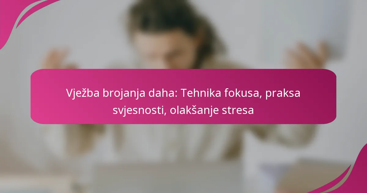 Brojanje daha je moćna tehnika svjesnosti koja vas potiče da se usredotočite na svoj dah brojeći svaki udah i izdah. Ova praksa ne samo da poboljšava koncentraciju, već također pomaže u smanjenju stre...